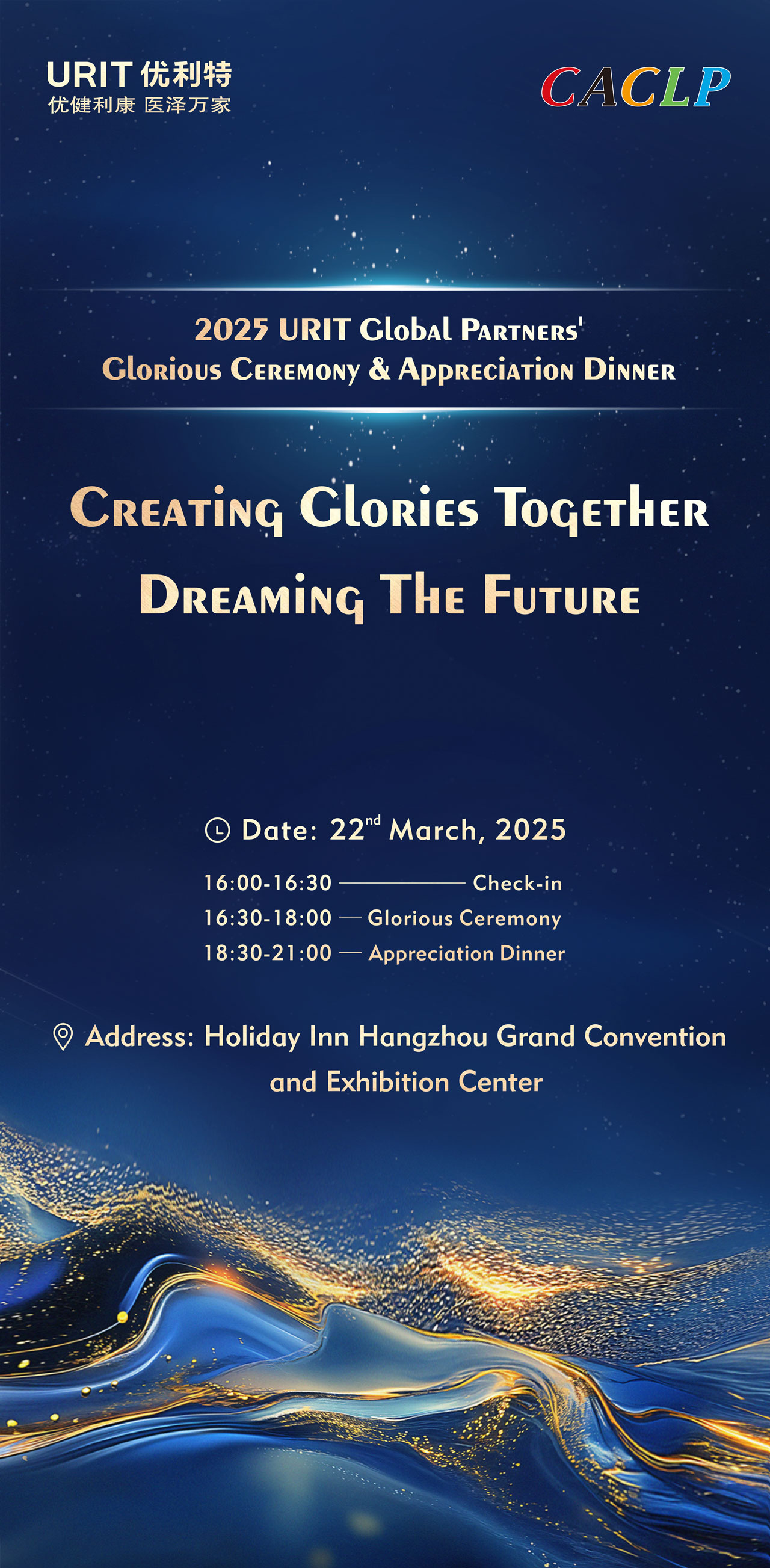 URIT sincerely invites global partners and industry leaders to an evening of celebration and collaboration at the 2025 Global Partners' Glorious Ceremony & Appreciation Dinner on March 22nd, 2025. Join us at the Holiday Inn Hangzhou Grand Convention and Exhibition Center to honor shared achievements and envision the next chapter of healthcare innovation.