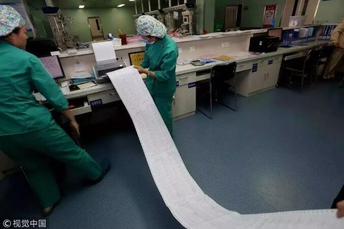 2016年12月30日,河南洛阳。20岁少女患重病住ICU一年,欠费账单100多米长。